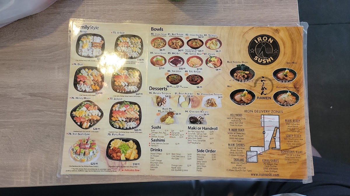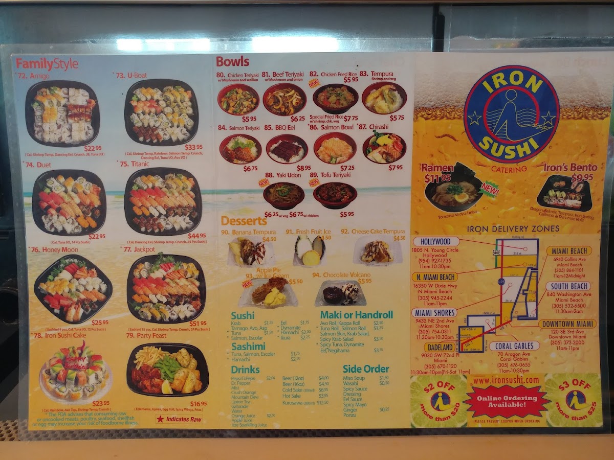 Welcome to Iron Sushi - Miami, a hidden gem nestled at 9030 SW 72nd Pl, celebrated for its mouthwatering sushi and exquisite Asian dishes. The menu showcases an array of options, including delectable bento boxes like the Beef Teriyaki for $14.00 and the Poke Bento featuring fresh tuna and salmon for $18.00. Each box comes with veggie spring rolls, edamame, and rice, making them a complete meal.